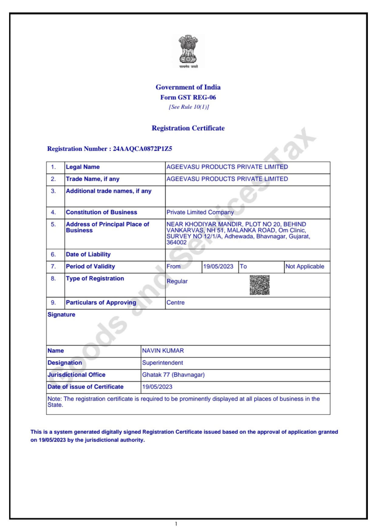 Gujrat GST certificate